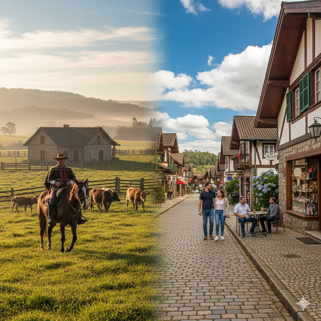 A cultura campeira, herdada dos tropeiros e dos primeiros colonizadores europeus, é o alicerce dessa identidade. Mesmo com o crescimento urbano e o turismo internacional, os valores do campo — como hospitalidade, trabalho duro e respeito à natureza — continuam moldando a forma como a Serra se apresenta ao mundo. Caminhar por Gramado é sentir o aroma de churrasco se misturando ao perfume das hortênsias; é ver o tradicional chimarrão nas mãos de moradores que, com orgulho, mantêm viva uma herança de séculos.